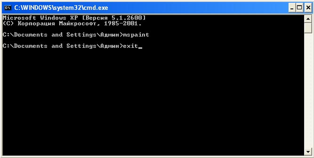 щелкнем мышкой на втором окне командной строки и введем exit (заметим, что окно Paint остается)