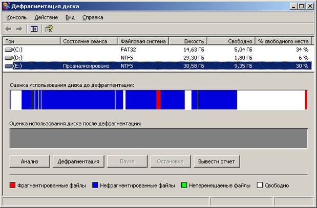 Том (E:) до дефрагментации: