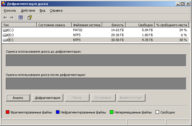 Непосредственно перед дефрагментацией необходимо провести анализ выбранного диска и получить отчет о работе программы анализа.
