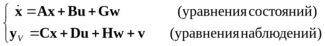 с известными входами u и возмущениями по входам w и измерениям v, которые являются «белым шумом» со следующими характеристиками: