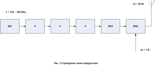 Исходя из предварительного расчета, строим структурную схему передатчика (рис. 1).