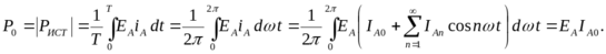 Подынтегральное выражение, если раскрыть скобки, распадается на бесконечное число слагаемых, но отличный от нуля результат будет только от одного слагаемого, определяемого произведением напряжения на ток, изменяющийся с такой же частотой nω, то есть
