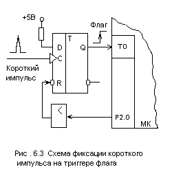 Для обнаружения кратковременных импульсов можно использовать способ фиксации импульса на внешнем триггере флага (рис. 6.3).