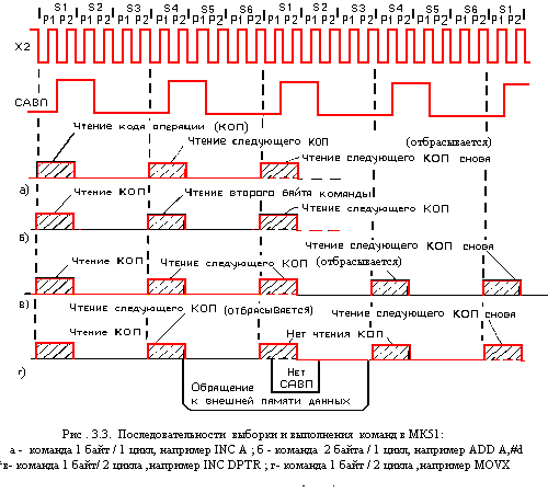 Рис. 3.3. Последовательности выборки и выполнения команд в МК51: