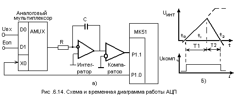 Метод двойного интегрирования. Схема подключения к МК дополнительной аппаратуры показана на рис.6.14.