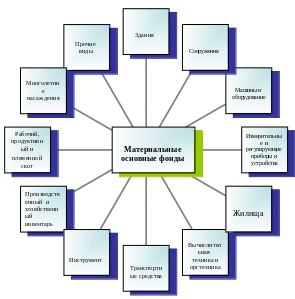 Основные фонды состоят из материальных и нематериальных основных фондов.