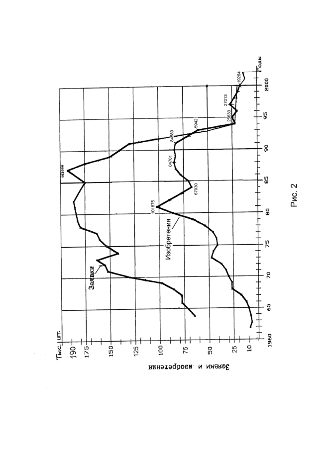 Два спада на диаграмме роста изобретений (см. рис. 2) объясняются ужесточением требований к оформлению заявок: в 1973 году введен патентный поиск по семи странам, в 1982-м повышен уровень требований к изобретению ввиду размытой границы с рационализаторским предложением, а равноправное рацпредложению понятие “полезная модель” в нашем патентном законодательстве тогда отсутствовало. Через пару лет темпы роста восстанавливались.