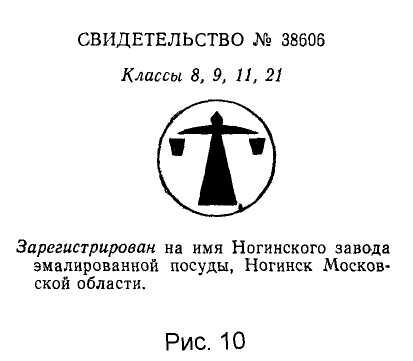Пример товарного знака (свидетельство №38606), зарегистрированного на имя Ногинского завода эмалированной посуды, (г. Ногинск Московской области) приведен на рис. 10.