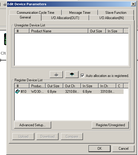 Далее можно вернуться к экрану выбора устройств Device Net (рис. 4.4) щелкнуть правой кнопкой мышки по WD30-ME и выбрать пункт «Register to another component», «CJ1W-DRM21». Далее двойным щелчком по иконке «CJ1W-DRM21» зайти в интерфейс настройки параметров мастер модуля связи (рис 4.4).