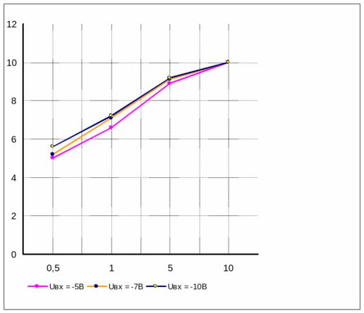 | Uвх.,В | 0 | 1 | 2 | 3 | 4 | 5 | 6 | 7 | 8 |