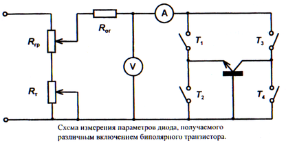 Приобрести практические навыки измерения параметров и вольт-амперных характеристик (ВАХ) интегральных транзисторов, включенных в качестве интегральных диодов.