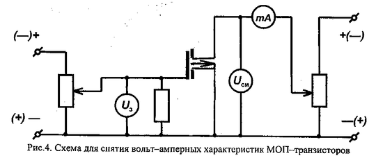 Выходные характеристики Iс = f(Uси) МОП-транзистора с индуцированным каналом.