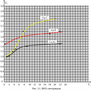 мА. Определить порог зажигания светодиодов. Данные занести в таблицу 5.2.