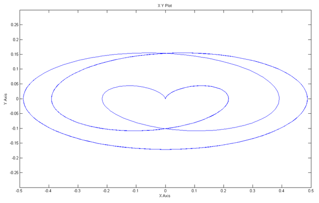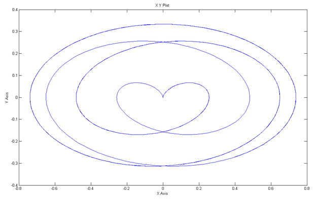 Фазовый портрет колебаний системы показывает, что колебания системы имеют вынужденный незатухающий характер, каждая фаза колебаний содержит 4 волны.