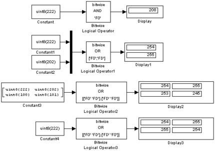 Примеры использования блока Birwise Logical Operator показаны на рис. 9.6.21.