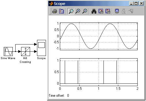 Рис. 9.7.18. Пример использования блока Hit Crossing