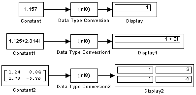 На рис. 9.7.15. показаны примеры использования блока Data Type Conversion.