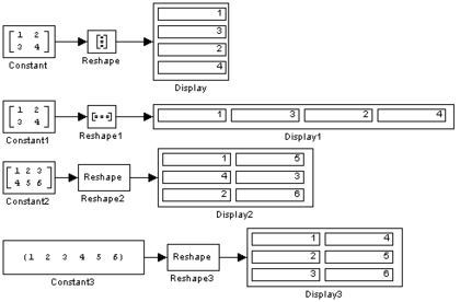 Рис. 9.7.16. Примеры использования блока Reshape