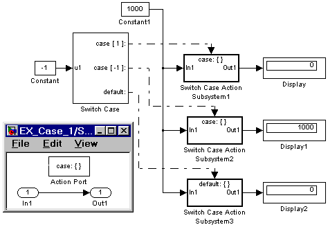 Рис. 9.9.8 Использование блока Switch Case совместно с подсистемами Switch Case Action Subsystem