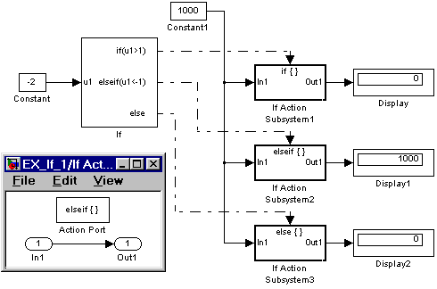 Рис. 9.9.7 Использование блока If совместно с подсистемами If Action Subsystem