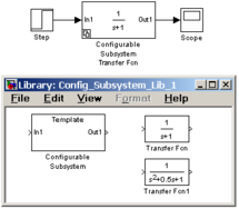 Добавить в созданную библиотеку блок Configurable Subsystem и все необходимые варианты конфигурации подсистемы. Каждый из вариантов должен представлять собой стандартный блок Simulink либо маскированную подсистему (подсистему, имеющую собственное окно установки параметров).