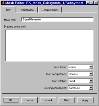 Пиктограмма подсистемы создается с помощью вкладки Icon (Пиктограмма) редактора маски. Окно редактора маски с открытой вкладкой Icon показано на рис. 9.10.5.