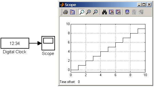 На Рис. 9.1.12 показана работа источника Digital Clock.