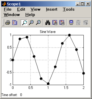 Рис. 9.2.8. Отображение синусоидального сигнала (Sample time = 0.1).