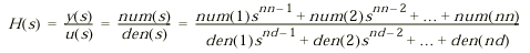 num – вектор или матрица коэффициентов числителя,