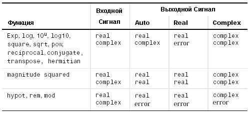 Тип выходного сигнала в зависимости от типа входного сигнала, вычисляемой функции и параметра блока Output signal type приведен в таблице 9.6.1.