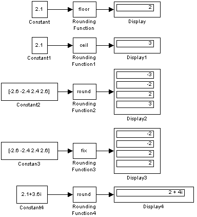 Примеры использования блока Rounding Function показаны на рис. 9.6.18.