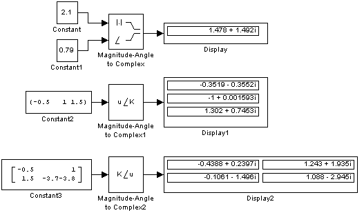 Примеры использования блока Magnitude-Angle to Complex показаны на рис. 9.6.16.