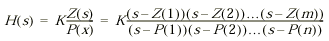 K – коэффициент передаточной функции, или вектор коэффициентов, если нули передаточной функции заданы матрицей. При этом размерность вектора K определяется числом строк матрицы нулей.