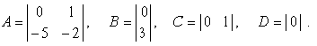 A, B, C, D - матрицы: системы, входа, выхода и обхода, соответственно.