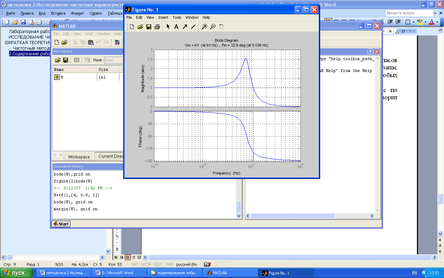 5.2.3.2. Привести распечатки, подтверждающие выполнение всех пунктов экспериментальной части и текстовые пояснения к ним. Записать передаточные характеристики разомкнутой и замкнутой систем, а также полностью охарактеризовать переходный процесс.