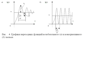 Графики переходных функций колебательного и консервативного звеньев показаны на рис. 1.4.