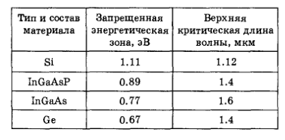 | Тип и состав материалов | Si | Ge | InGaAs |