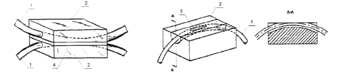 | 1. Соединение боковых сошлифованных поверхностей волокон Матрица 2х2. Одномодовые и многомодовые. Потери 0,2–0,5 дБ. | Рис.5. Разветвитель на основе шлифованных волокон: 1-оптическое волокно; 2- кварцевые пластины с канавкой; 3-сошлифованный участок волокна;4-имерсионный гель |