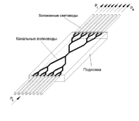 | 5. Интегрально-оптические разветвители Матрица 1хN; 2хN; NxN. N=2; 4; 8; 16; 32 В основном одномодовые. Потери 1–3 дБ На основе диффузионных волноводов На основе гребенчатых волноводов | Рис. 11. Интегрально-оптический разветвитель |