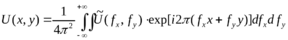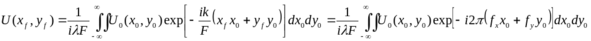 Из сравнения выражения (4.1) с (2.4) видно, что интеграл в выражении (5.1) есть Фурье-преобразование функции U0(x0,y0) с пространственными частотами:
