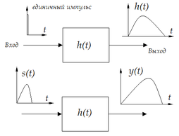 | Уравнение свертки: Выходной сигнал линейной системы может быть получен как свертка его входного сигнала и импульсной характеристики системы. |