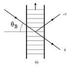 При Q>>1 наблюдается дифракция Брэгга. Она имеет место на высоких частотах при большой длине взаимодействия света с акустической волной. Интенсивность первого максимума будет наибольшей, если свет падает под углом к волновому фронту акустической волны, удовлетворяющим условию Брэгга: