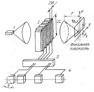 Рис. 6. Акустооптический анализатор спектра с пространственным интегрированием