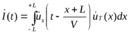 Ток ФП I(t) пропорционален интенсивности света, усредненной по площади фотокатода. Можно показать, что ток ФП содержит радиочастотную составляющую с частотой Ω несущего колебания сигнала s(t), которую можно выделить полосовым фильтром, включенным последовательно с ФП. Считая, что сигнал и транспарант пространственно согласованы, т.е. период пространственной несущей транспаранта равен длине волны сигнала (что означает к=K), то в результате математических преобразований можно получить выражение для комплексной огибающей тока ФП (9), представляющее собой функцию свертки комплексных огибающих обрабатываемого и опорного сигналов.