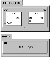 Команда вывода импульсов (PLS) используется для управления функциями "Вывод последовательности импульсов" (PTO) и "Широтно-импульсная модуляция"(PWM), имеющимися в распоряжении скоростных выходов(Q0.0 и Q0.1).