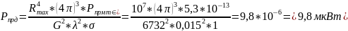 Pпрм. min= k*T0*Δf*1,1*Шдоп*γ2=1,39*10-23*293*20*106*1,1*8*0,862=