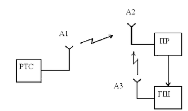 (РТС – передающая радиосистема, А1- А3 – антенны, ПР – приемник, ГШ – генератор шума)