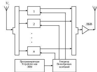 Выходные сигналы всех каналов суммируются, усиливаются и излучаются в направлении на подавляемую станцию.