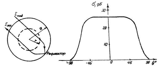 Если дипольный отражатель ориентирован перпендикулярно к вектору , то σд = 0. Влияние турбулентности атмосферы и различных аэродинамических свойств отражателей учитывается средним значением их ЭПР: