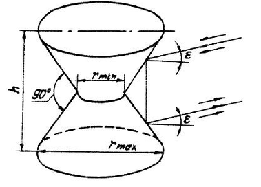 Одной из модификаций уголкового отражателя является биконический отражатель (рис.4.6), обладающий круговой диаграммой рассеяния. Для падающей волны с поляризацией, параллельной продольной оси отражателя, ЭПР имеет вид: